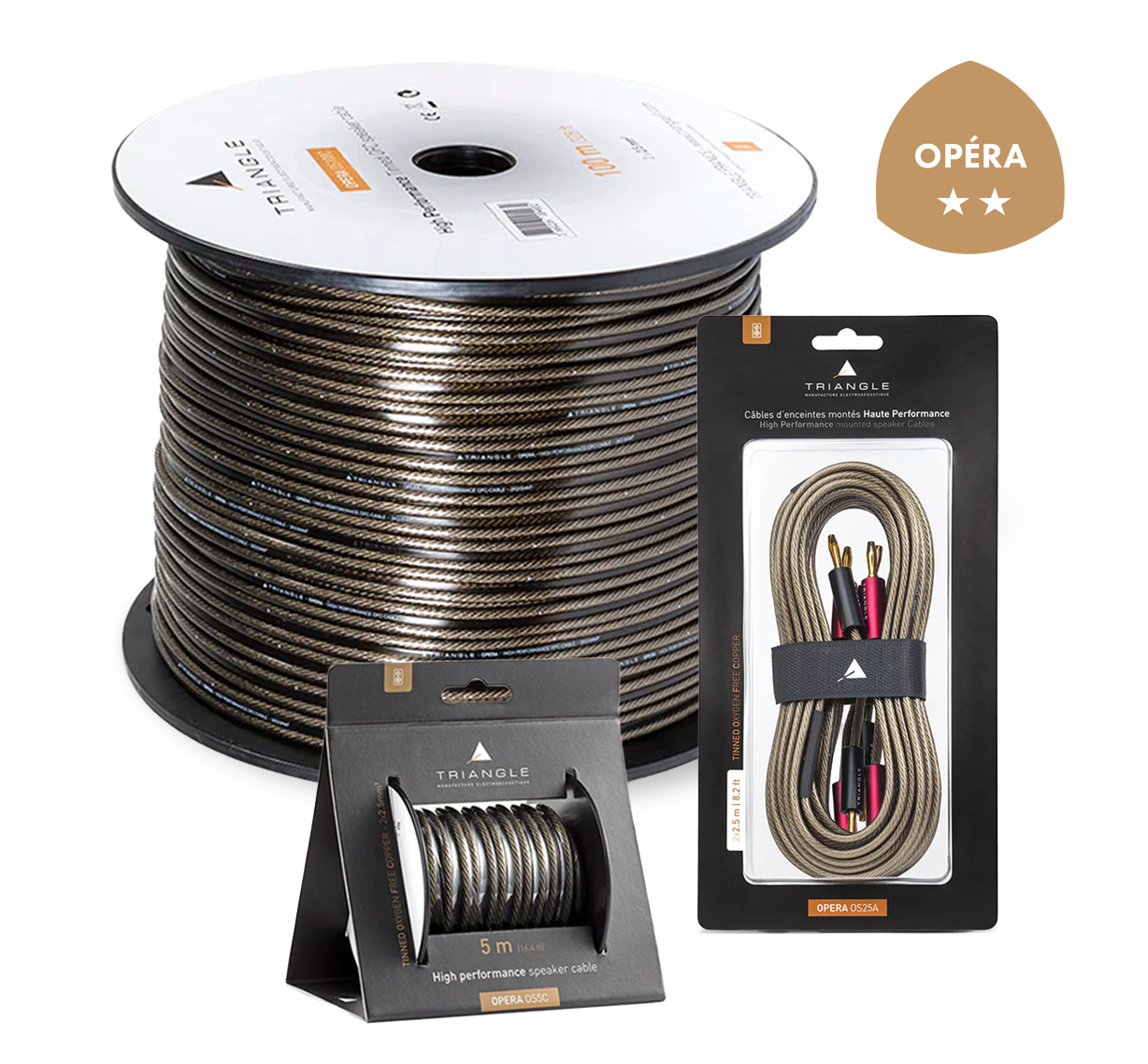 The OPERA range offers cables designed to ensure reliable and accessible connections in any Hi-Fi or Home cinema system. Available in pre-assembled or spool versions, they are made from tinned deoxygenated copper and protected by flexible PVC insulation.