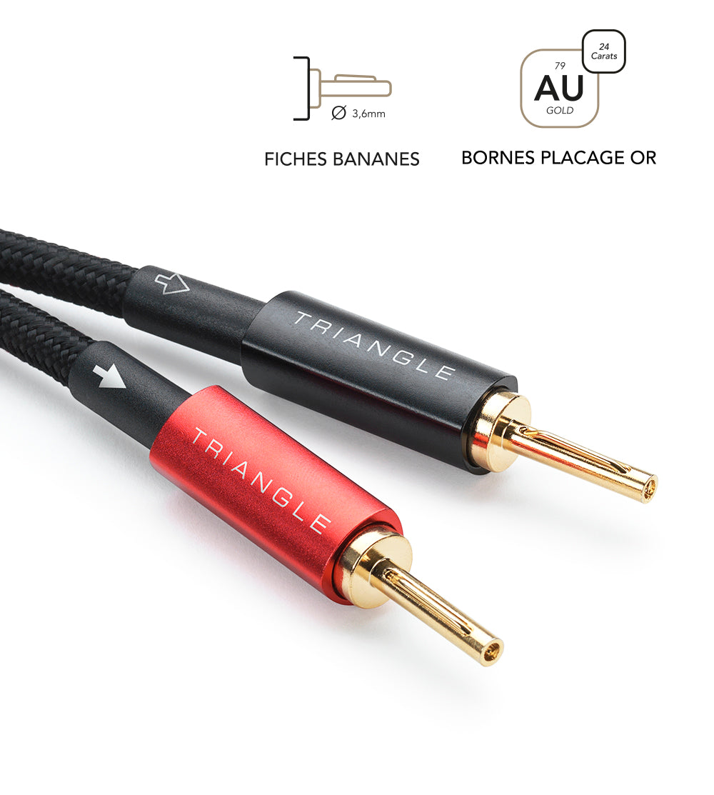 Chaque câble est équipé de fiches banane standard de 3,6 mm, plaquées or pour garantir un contact stable et durable.