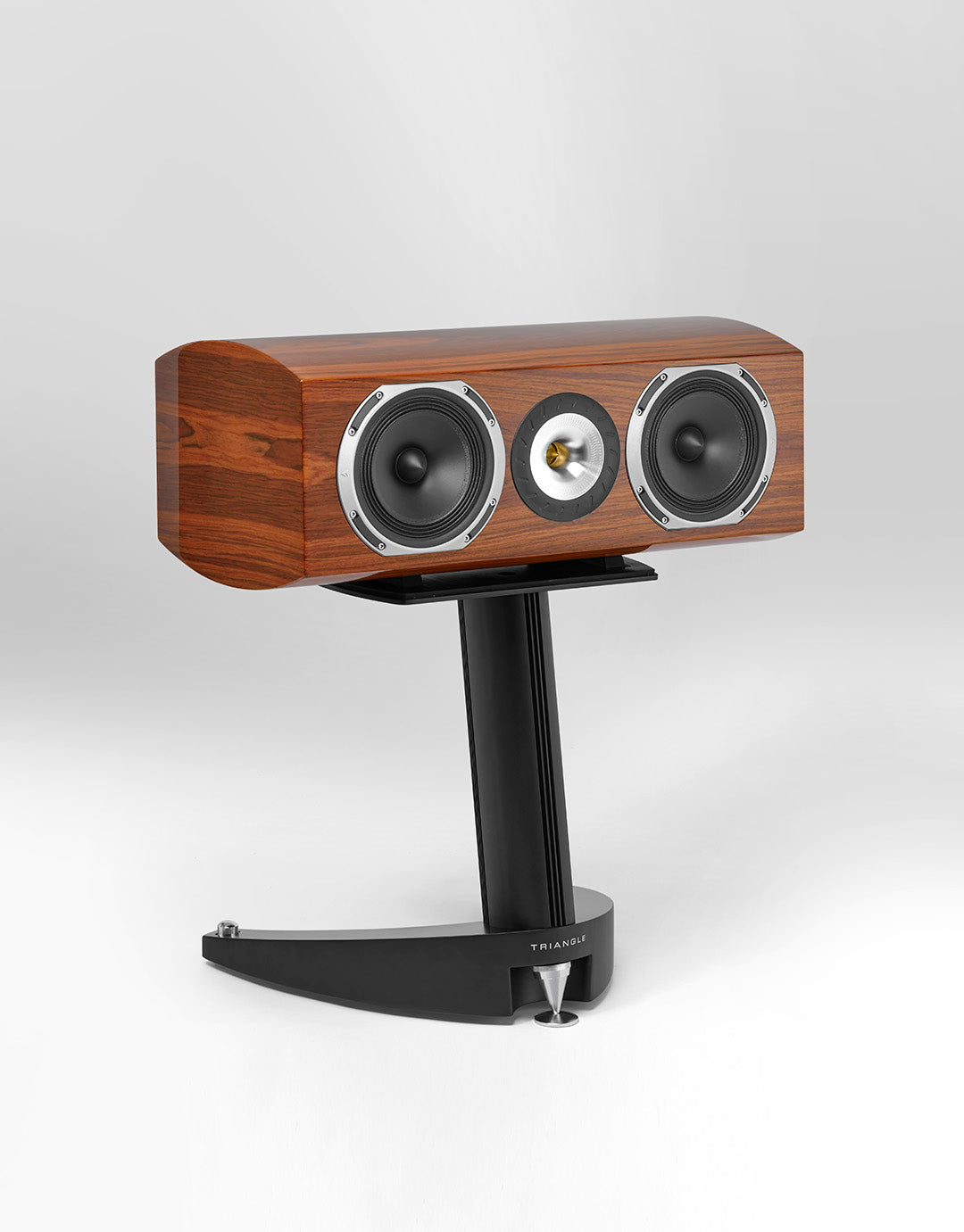 El soporte S08-C está dedicado a los canales centrales de alta gama. Su parte superior ha sido especialmente diseñada para adaptarse a las formas curvas de Magellan Voce40th.